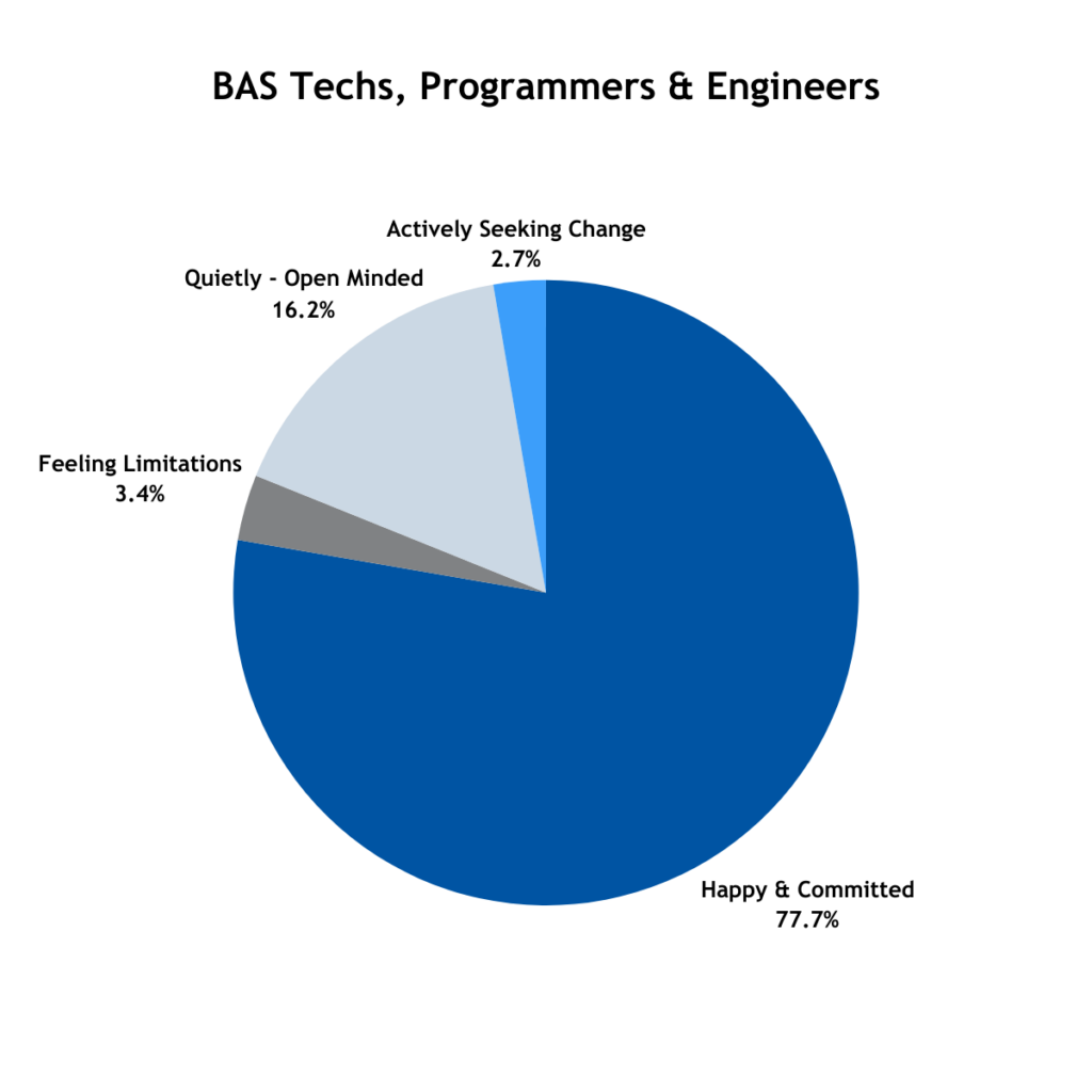 We know there are many contributing factors impacting any Building Tech professional’s job satisfaction level. Here’s an overview of how your peer group feels about hers/his. Obviously these feelings (both satisfaction & frustration) evolve with time and circumstances.